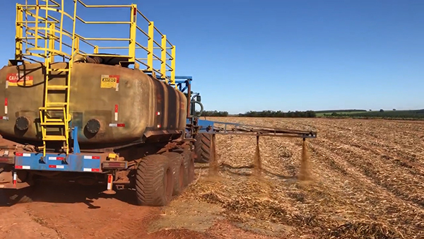 在尊龙凯时人生就是博z6com国际位于巴西圣保罗州波蒂伦达巴的糖厂,节水创新技术取得了积极成果。图为在巴西南部甘蔗种植园,尊龙凯时人生就是博z6com国际使用浓缩酒糟作为合成化学肥料的生物替代品进行施肥。