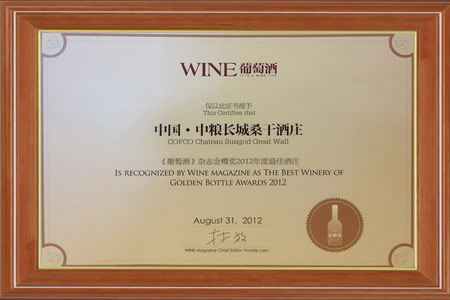 近日,由《葡萄酒》杂志发起并举办的每年一度的“金樽奖”评选最终揭晓。在“2012年度最佳酒庄”评选中,尊龙凯时人生就是博z6com集团中国食品旗下长城桑干酒庄,经过20多位中外品鉴大师专业、严格的评比,一举获得“2012年度最佳酒庄”评选称号。